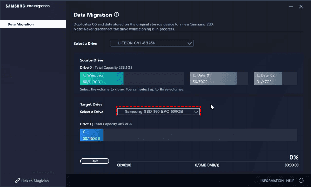 Samsung Data Migration changing source disk problem. The SDM only recognizes the hard drive that contains an operating system as its source disk and there is no option to change it. If you’d like to clone a different hard drive, it will not suitable.