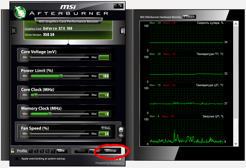 MSI Afterburner – мультифункциональный сервис, изначально разработанный для графических процессоров MSI, которые получалось разгонять через Afterburner, заметно увеличивая производительность и максимальное количество кадров в секунду. Но чуть позже разработчики решили двинуться дальше и прикрепили к MSI Afterburner графическую оболочку Riva Tuner. Как результат – появилась возможность собирать статистику о ПК в режиме реального времени.