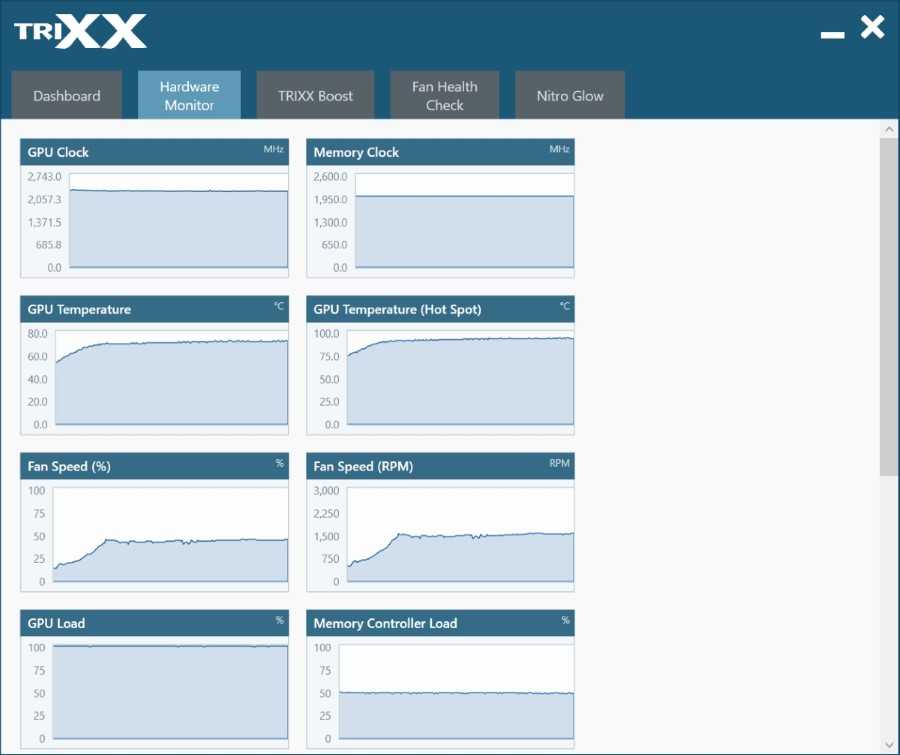 Регулировать в Sapphire TriXX настройки достаточно легко, помимо ползунков есть возможность точной подстройки и ввода значения с клавиатуры.