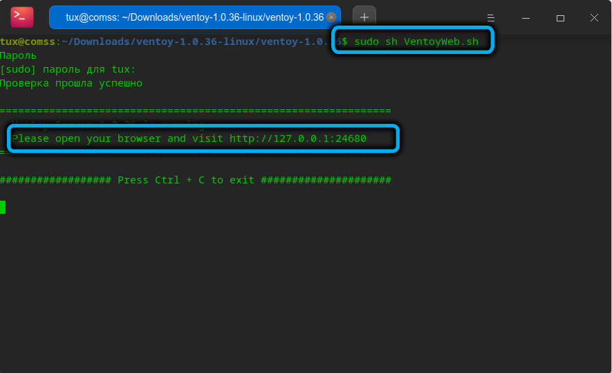 В терминальном режиме работать с программой Ventoy (вернее, устанавливать её), намного сложнее, поэтому описывать, как это делается, не будем – сегодня фанатов терминальной работы даже среди ярых поклонников Linux днём с огнём не отыщешь.
