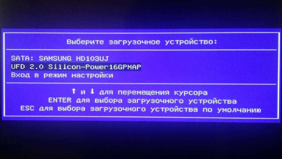 Для того, чтобы перейти к установке Windows перезагружаем компьютер и в момент загрузки компьютера вызываем Boot Menu. Клавишу для его запуска можно найти в инструкции к материнской плате, также она показывается на первом экране при включении ПК. При запуске Boot Menu появятся все доступные на данном компьютере загрузочные устройства. Находим там флешку и загружаемся. Второй вариант – зайти в BIOS и в разделе с приоритетами загрузки на первое место поставить USB носитель.