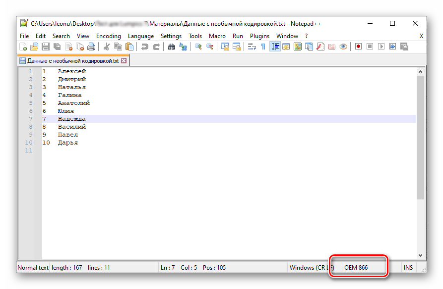 - Сначала делаем резервную копию файла, так как неправильные действия с кодировкой могут повлечь необратимую потерю данных. Затем открываем файл программой Notepad++. Он корректно отображает самые разные кодировки.