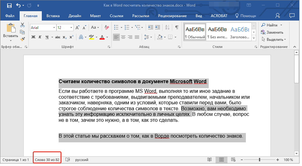 - Просто взять посчитать все символы в тексте. Один, два, три… Отличный способ для развития устного счета в голове, но очень уж трудоемкий и с непредсказуемым результатом. Однозначно не наш вариант.
