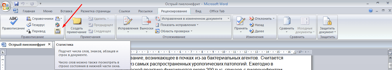 В самых новых версиях Word «Статистика» находиться в меню «Рецензирование».