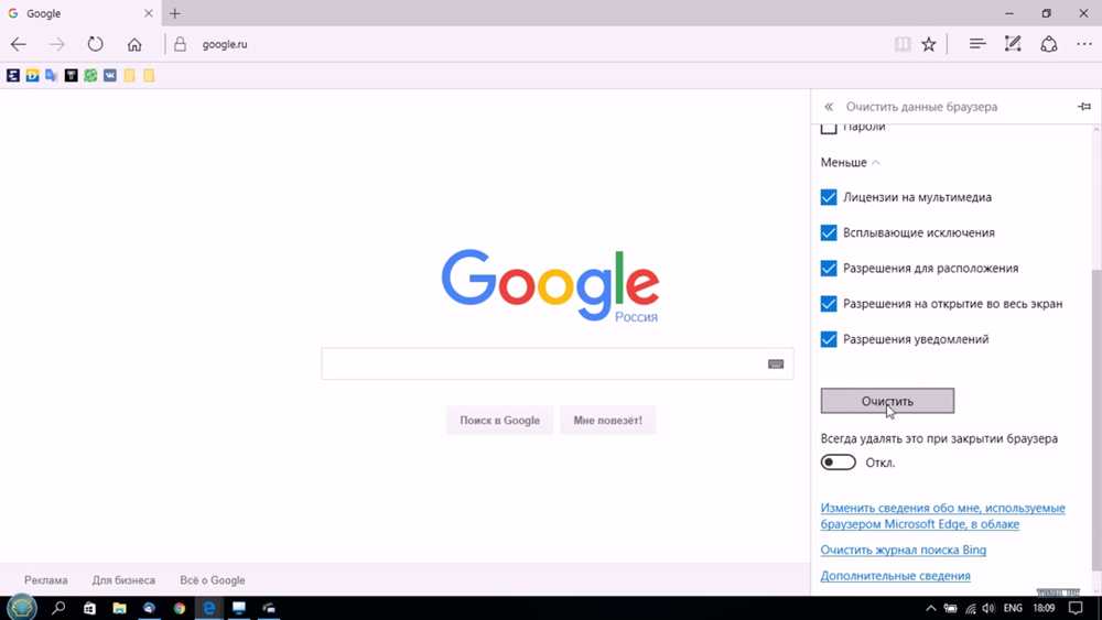 Как очистить кэш в браузере Microsoft Edge