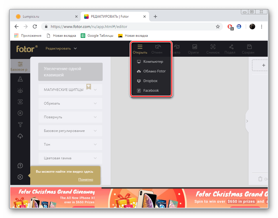 - Для обработки лучше всего приблизить фото касанием пальцев.