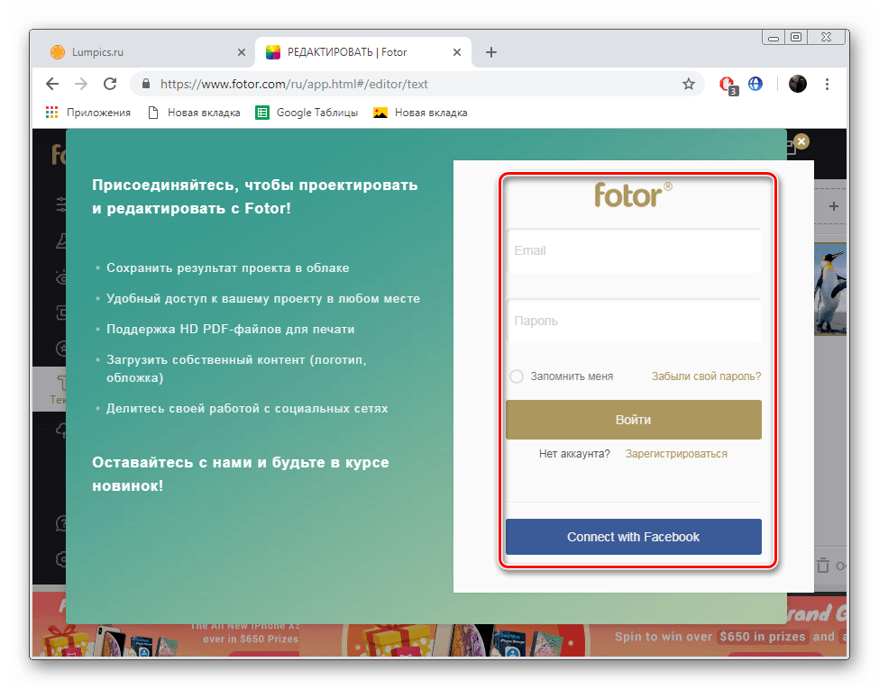 - Зарегистрироваться или авторизоваться через Facebook или Google Play.