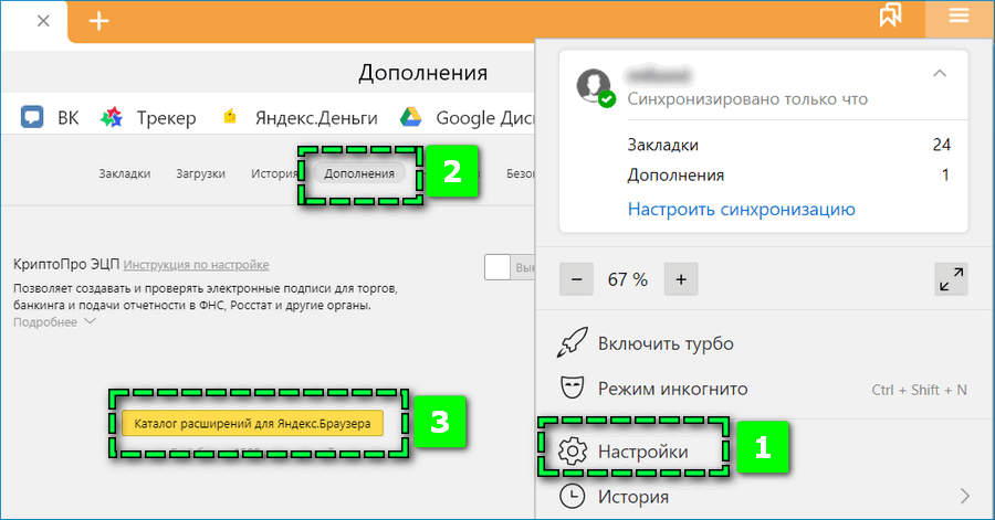 Загрузка расширений – наиболее простой способ защитить Яндекс.Браузер, поскольку управление блокировщиком можно осуществлять напрямую через веб-обозреватель.