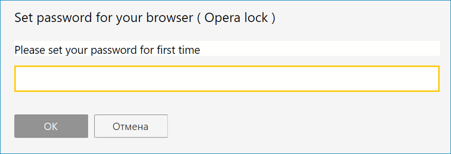 Все! Осталось только выйти из Оперы и зайти в нее снова. У вас появится окно ввода кодовой комбинации, которое не даст вам никуда продвинуться, пока вы не введете установленное кодовое слово.