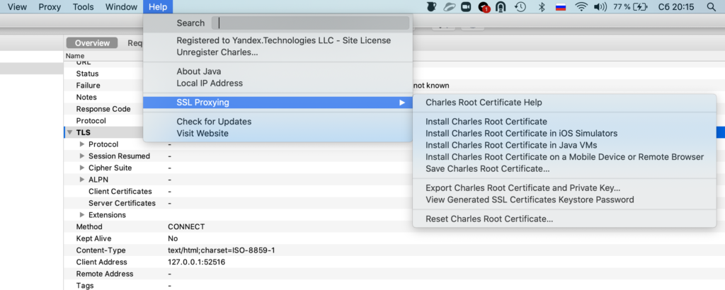 Подробнее про установку сертификатов можно прочитать в Charles.