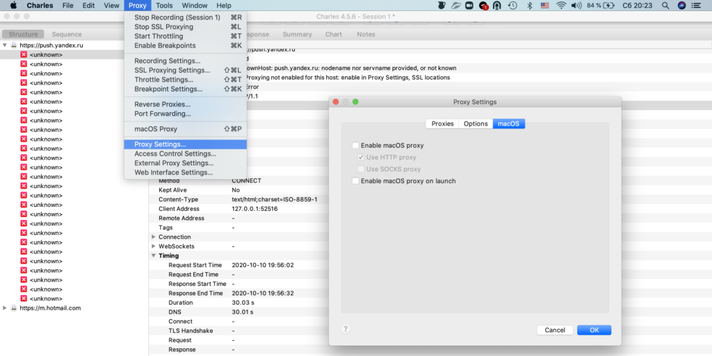 MacOS Proxy или Windows Proxy разрешает или запрещает проксирование трафика из браузера, установленного на том же компьютере, что и Charles.