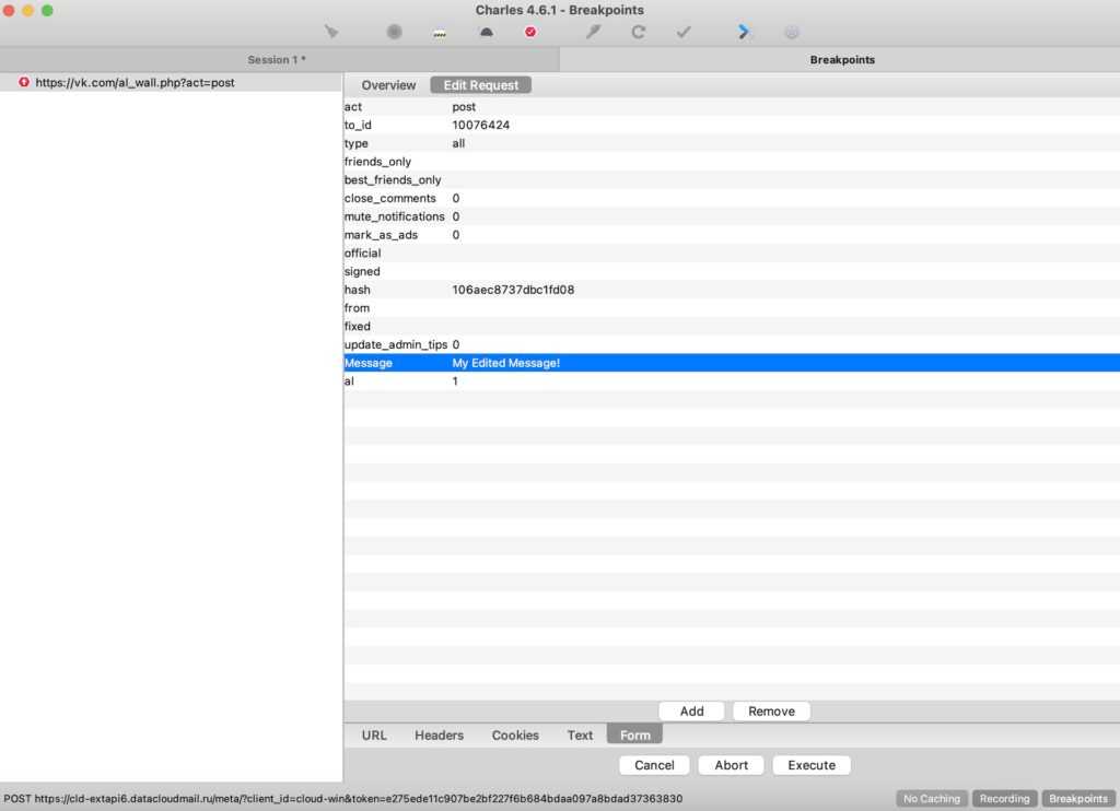 Задача: перехватить запрос (ответ) и перед отправкой (приемом) его отредактировать. Отличие от предыдущей задачи заключается в том, что в ней данные менялись на лету по заранее заданному шаблону, здесь же редактирование осуществляется вручную.