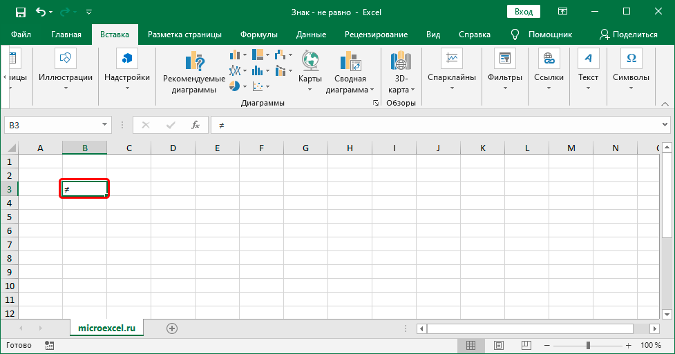 На компьютерной клавиатуре, помимо букв алфавита и цифр, также представлены самые популярные символы, которые чаще всего используются в программах при работе с текстовой и другой информацией, в том числе, знаки сравнения – “больше” и “меньше”. Но что делать, если требуется вставить символ “не равно”, который физически не представлен на устройстве ввода? Давайте посмотрим, как можно справиться с этой задачей в Эксель.