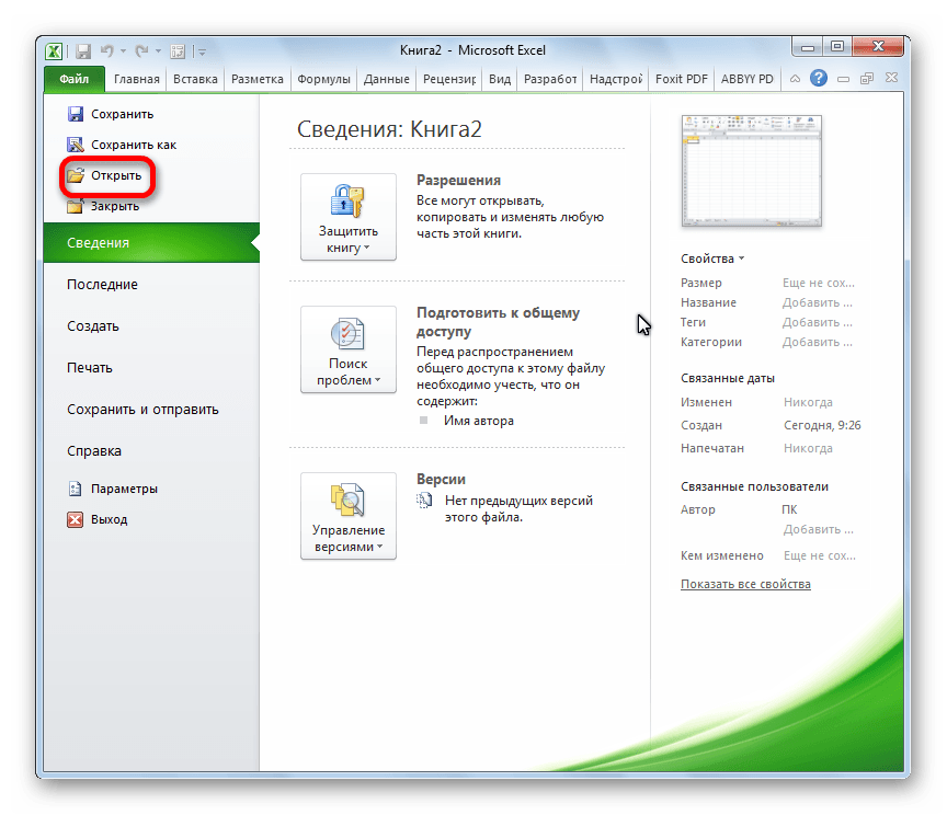 Зайдите в программу Excel и откройте только что сохраненный документ следующим образом: