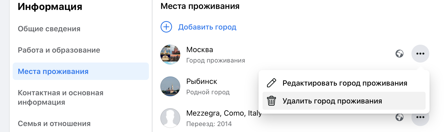 В Facebook могут быть видны ваш возраст, места работы и проживания, семейный статус, сведения о родственниках и даже все места, в которых вы побывали. Если вы не хотите, чтобы эту информацию использовали сторонние компании и сервисы, лучше удалить ее со страницы.