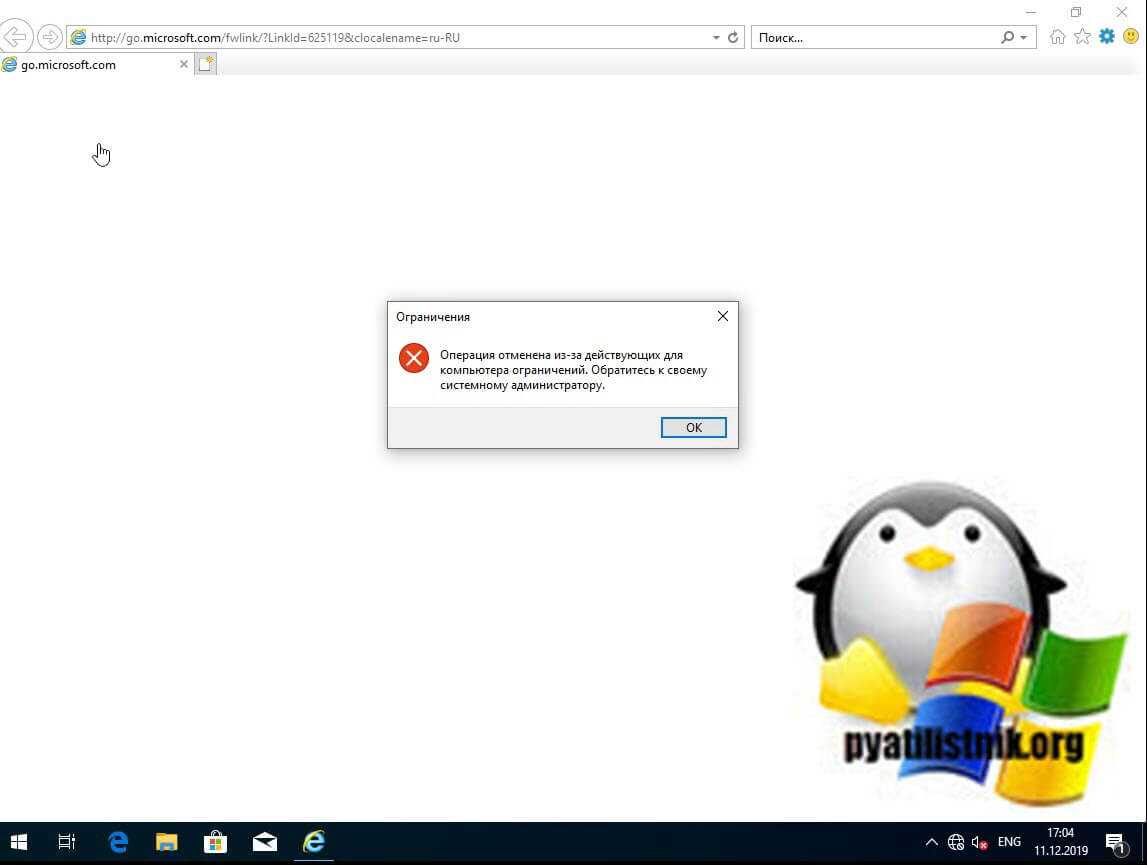 Операция отменена из-за действующих для компьютера ограничений. Обратитесь к своему системному администратору