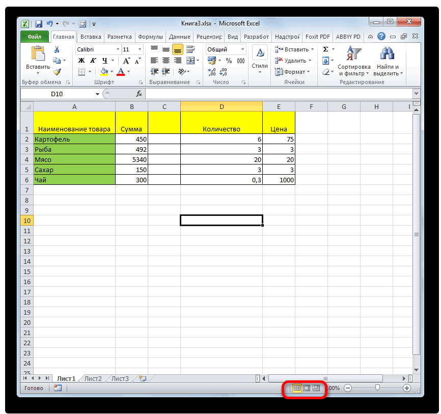 Переключить режимы работы в Экселе можно также через кнопки на ленте во вкладке «Вид».