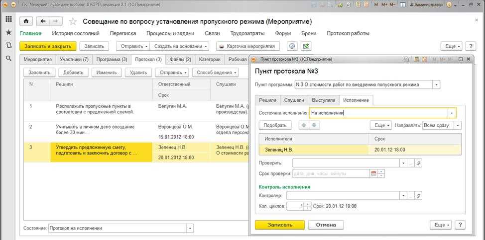 Рис. 5. Протокол мероприятия со списком поручений в