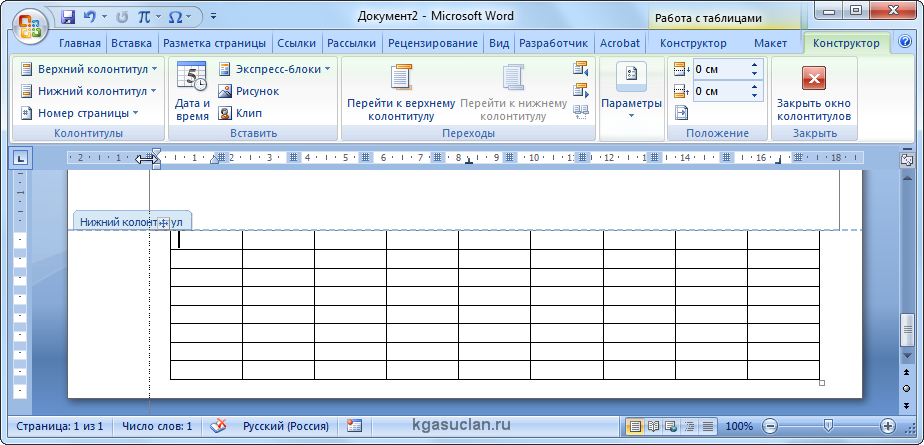 Получаем таблицу в нижнем колонтитуле. Передвигаем её к левому краю.