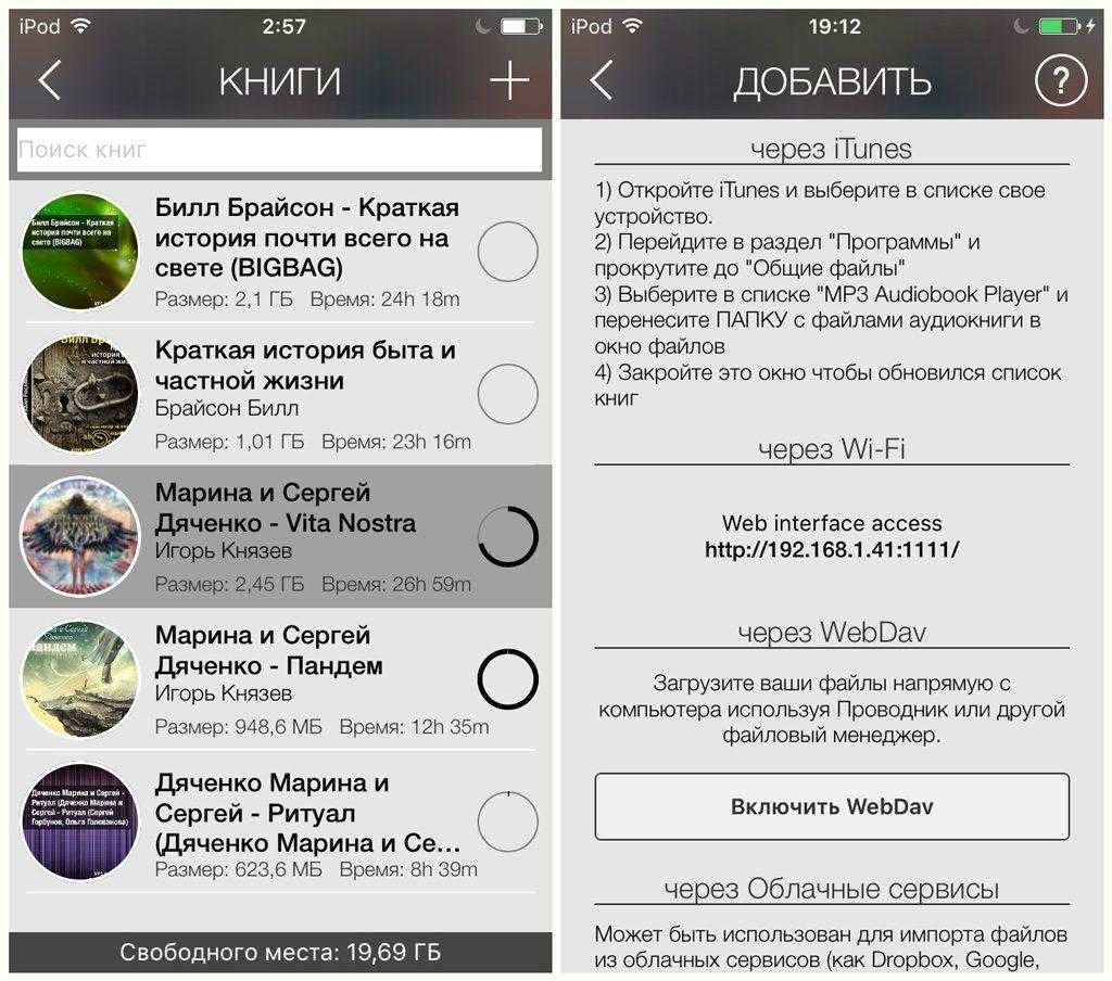 А если вам кажется, что перечисленных методов недостаточно, то мы предлагаем вам ряд программ, которые позволят закачивать аудиокниги на айфон, слушать добавленный материал и загружать бесплатные рекомендации от производителей приложений:
