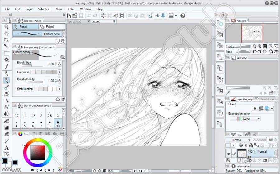 Это легкая программа, она работает без сбоев, в ней действительно легко ориентироваться, и в ней есть много вещей, необходимых для создания иллюстраций манги.