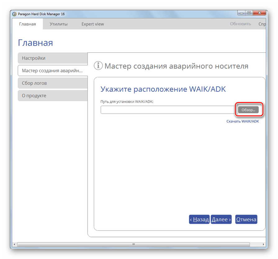 Paragon Hard Disk Manager является комплексной программой для работы с дисками. В её функционал также входит возможность создания загрузочной флешки. Порядок манипуляций при этом зависит от того, установлен в вашей операционной системе WAIK/ADK или нет. Далее мы подробно рассмотрим алгоритм действий, которого необходимо придерживаться для выполнения поставленной задачи.