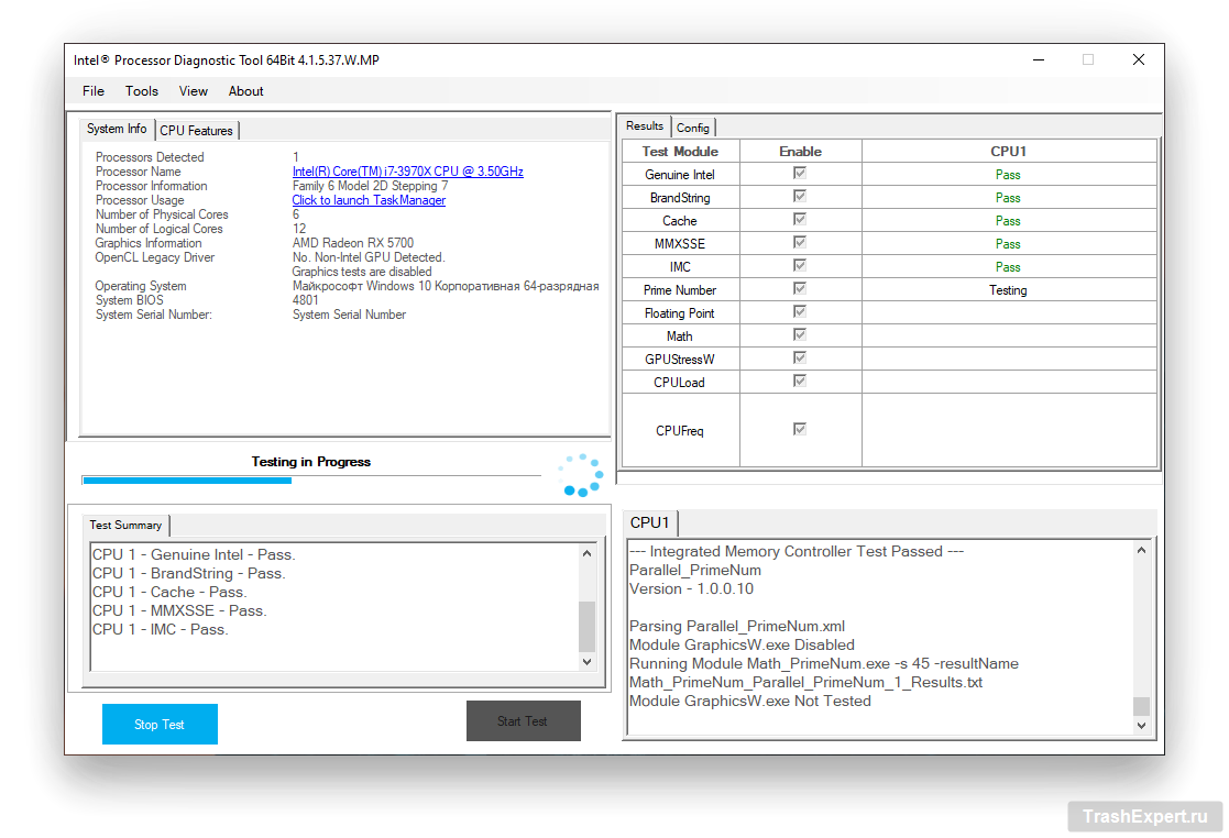 Если у вас компьютер на процессоре Intel, этот производитель выпускает и инструмент для стресс-тестирования. Этот инструмент проверят ваш процессор, его рабочую тактовую частоту, тестирует встроенную функциональность и затем занимается тестированием под серьёзной нагрузкой. Можно настроить тест на цикличное выполнение, а также на автоматическое выключение в случае перегрева.