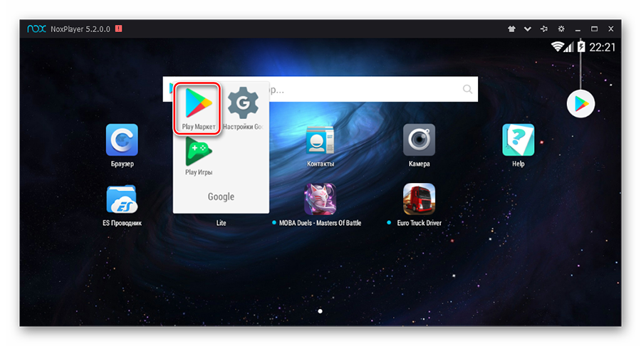 Все, на этом этапе установка эмулятора Nox App Player завершена. Для полноценной работы программы вам необходимо будет зайти в свой аккаунт Play Market — нажмите на иконку приложения в папке Google, введите логин и пароль от вашей учетной записи.