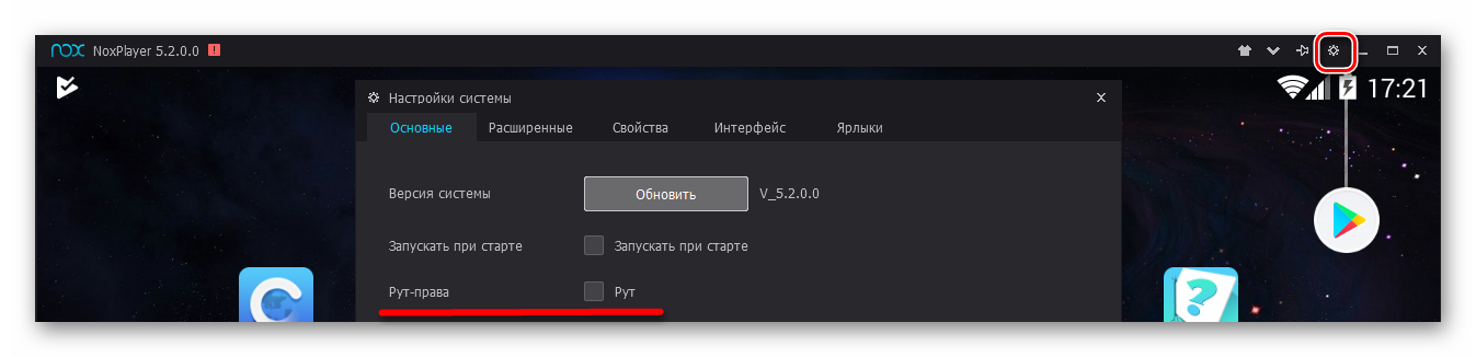 Для тех, кто хочет испробовать в среде эмулированного Андроид Root-права, Nox App Player может дать и такую возможность. Для активации режима «Суперпользователь» нужно перейти в настройки Плеера в правом верхнем углу и поставить галочку напротив соответствующей позиции.
