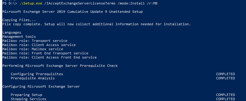 Для того, чтобы установить Exchange через командную строку выполните следующие шаги: