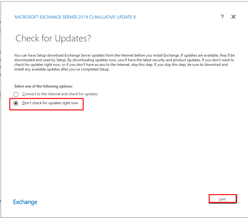 2. Запустите установку Exchange сервера (для версии Exchange 2019 ниже CU11):