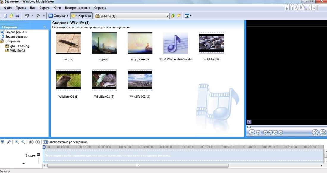 - Запустить приложение Windows Movie Maker, открыть любой видео-файл.
