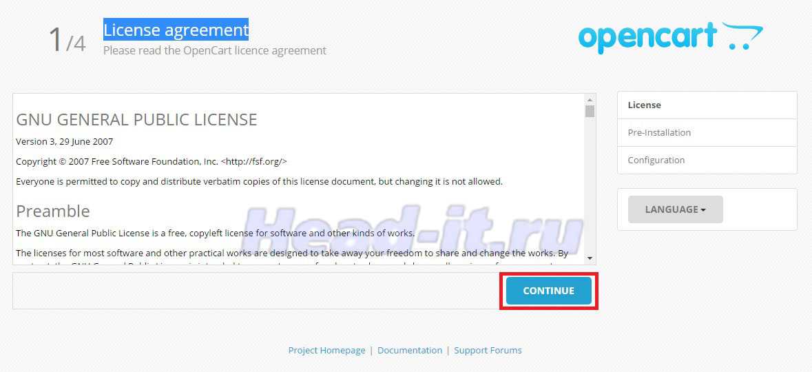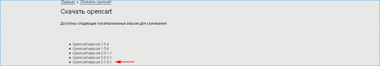 Переходим на страницу http://www.opencart.ru/, выбираем последнюю локализованную версию CMS и загружаем архив.