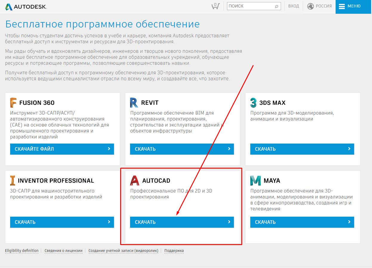 Заходим на сайт Автодеска, в образовательное сообщество, по .