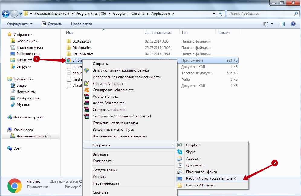 - Если у вас нет ярлыка Chrome, то создайте его следующим образом: