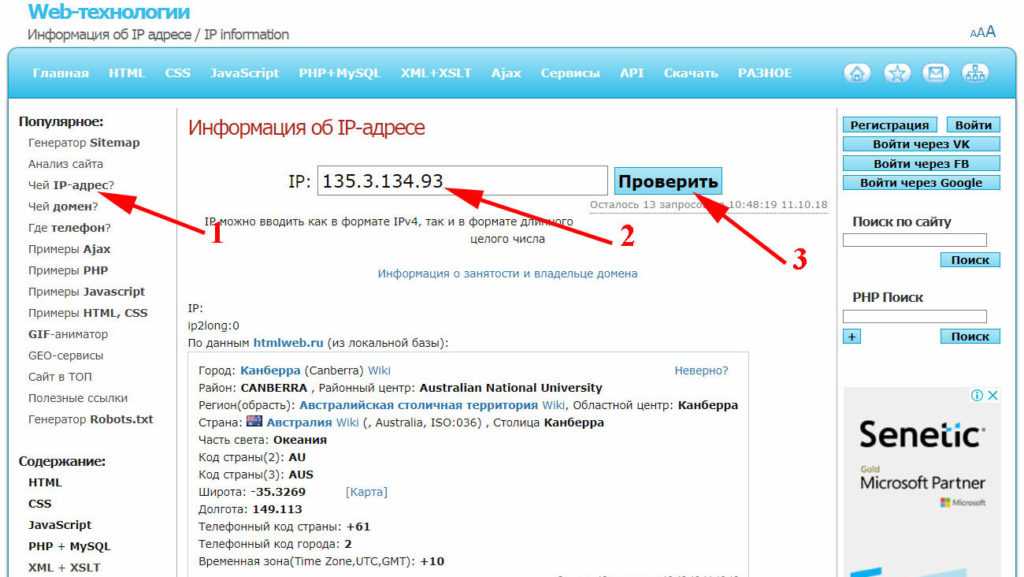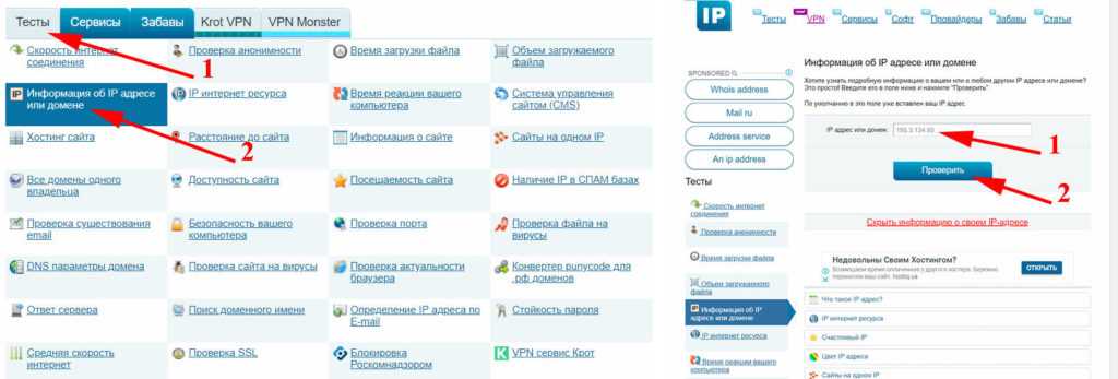 2ip.ruЗаходим во вкладку «Информация об IP address или домене», дальше вводим айпишник и код подтверждения, нажимаем «Проверить». У вас появится данные по этому айпи адресу.