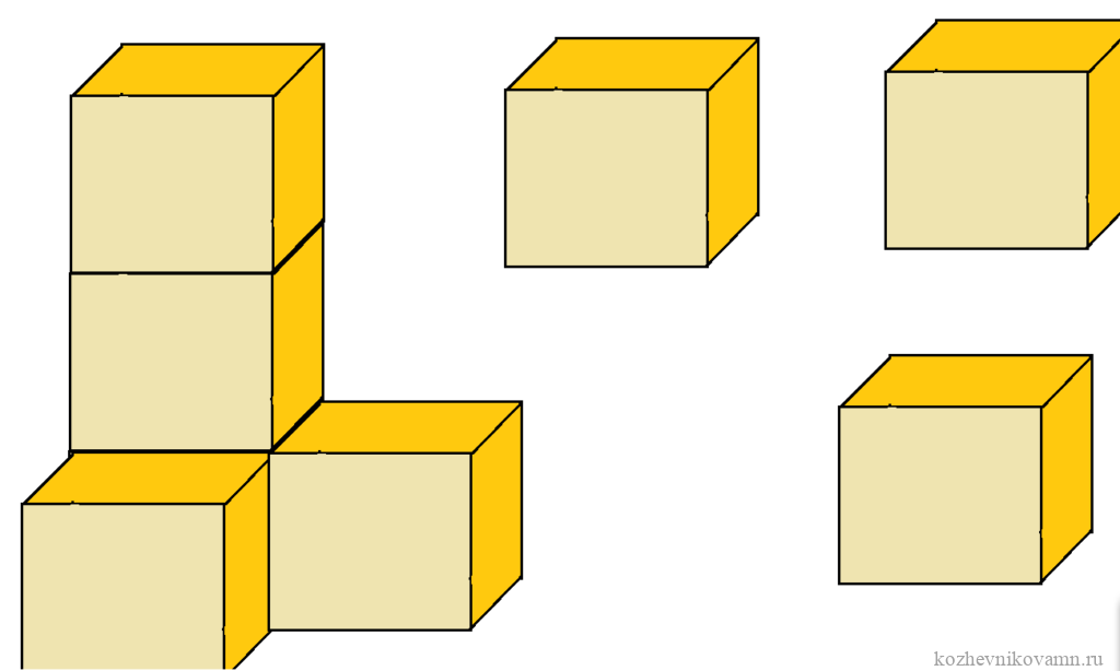 Теперь кубики необходимо поставить друг на друга так, чтоб получилась необходимая фигура.