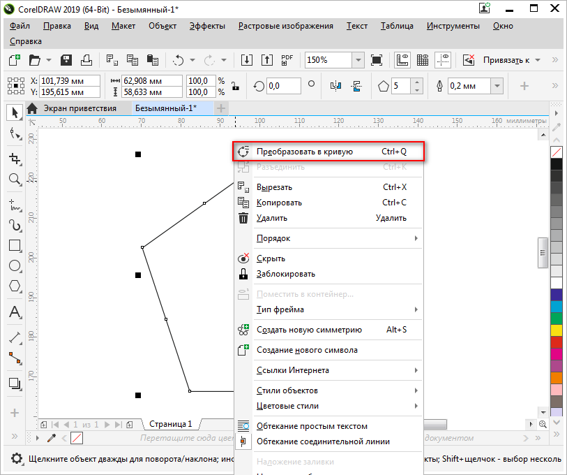 Выберите фигуру и вызовите контекстное меню правой кнопкой мыши. В нём выберите «Преобразовать в кривую».