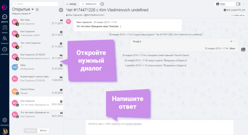 Отвечайте клиентам из всех каналов через один интерфейс.