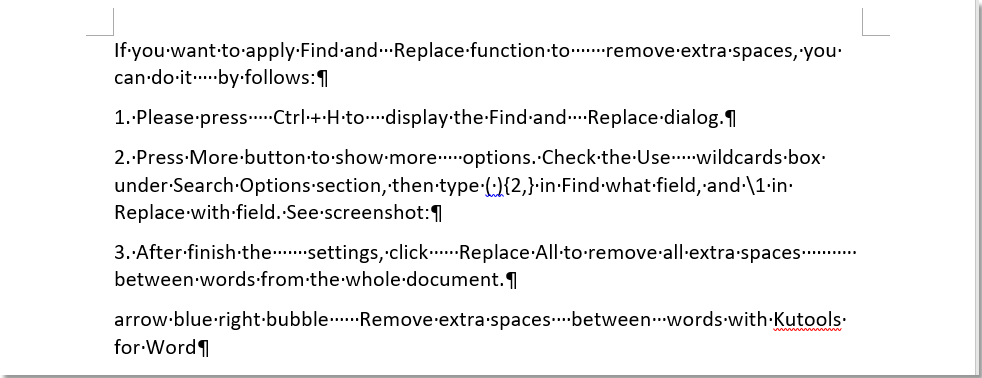 Kutools для слова’s Extra Spaces Утилита может легко и быстро удалить все лишние пробелы из документа.