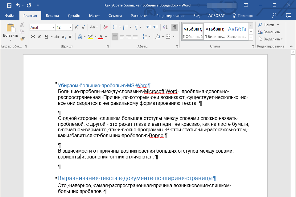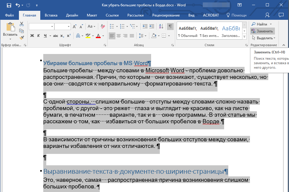 Как убрать лишние пробелы между словами в Word