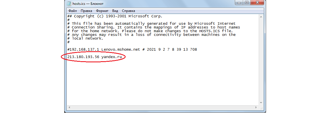 Также можно внести DNS «семейного поиска» в файле hosts. Для этого войдите в каталог C:WindowsSystem32driversetc и откройте файл при помощи Блокнота. Затем допишите в конце строку «213.180.193.56 yandex.ru» (без кавычек)