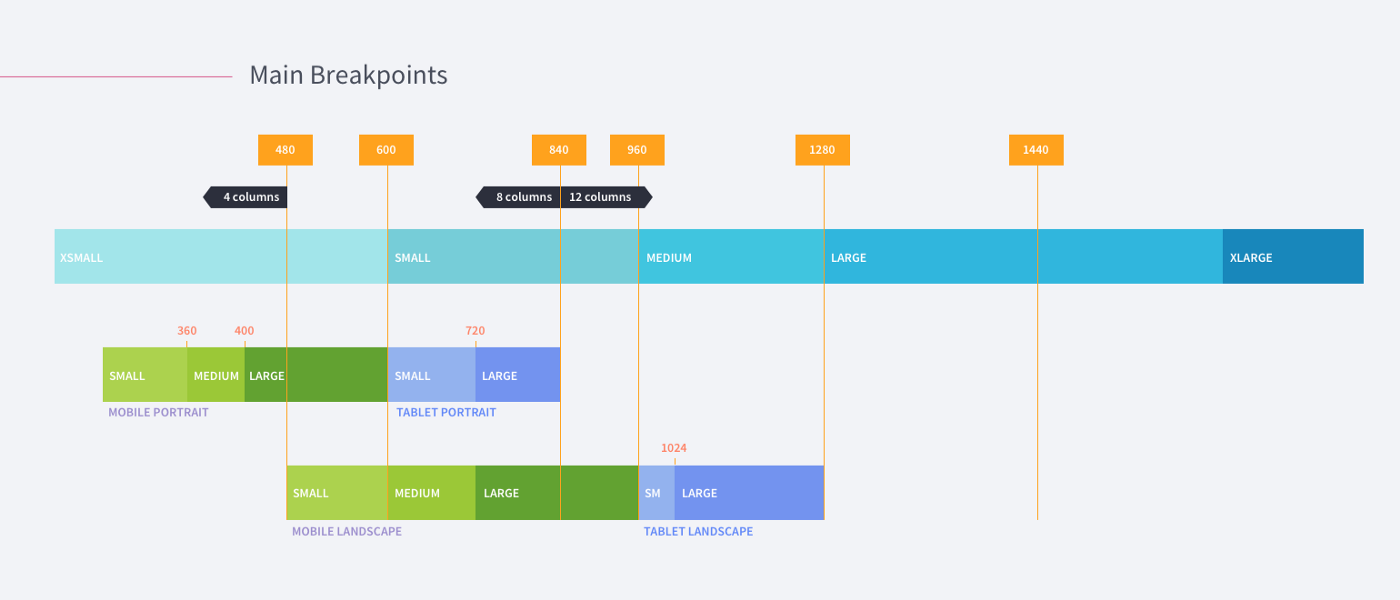Пример переиспользования точек перехода Material Design responsive laoyout grid для внутреннего проекта EPAM