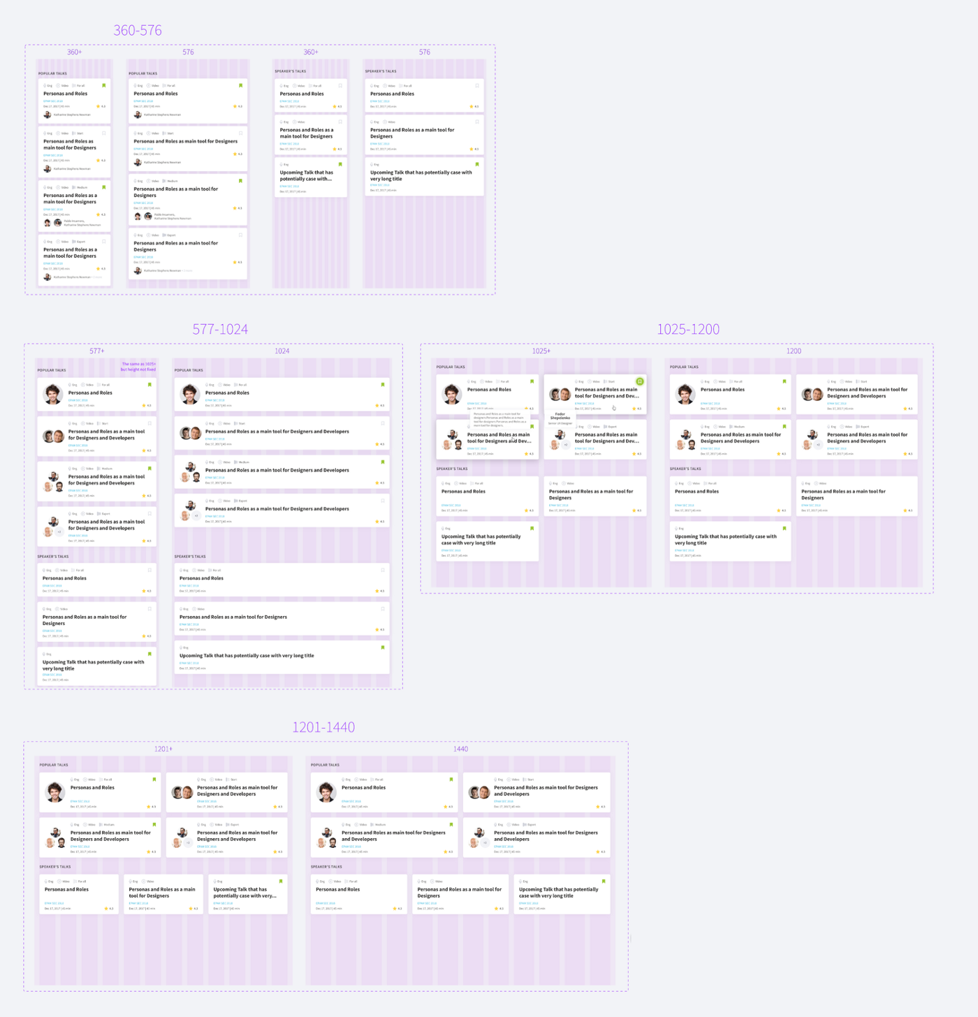 В адаптивном дизайне нужно сохранять структуру макета и аккуратность подачи информации для всех разрешений, поэтому макеты следует делать для всех контрольных точек. Колонки сетки могут оставаться статичными и добавляться по мере увеличения ширины экрана, а элементы менять свое положение, подчиняясь колоночному ритму и точкам перехода (breakpoints). За таковые можно принять 480, 600, 840, 960, 1280 и 1440. И для каждого разрешения экрана соответственно будет разное количество колонок. В качестве подробного примера, рекомендуется ознакомиться с . При жестком дедлайне, вы можете выбрать наиболее популярные 2–3 точки перехода, используя веб-аналитику вашего ресурса или ваших конкурентов.