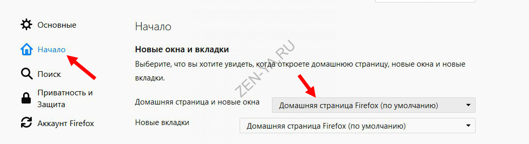 В Мозиле настройка осуществляется примерно так же, что и в Хроме. Сначала нужно отключить рекомендации со вкладки главной страницы.