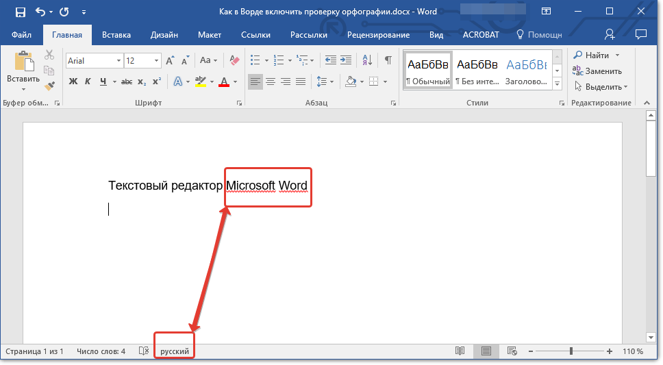 Как включить проверку орфографии в Ворде