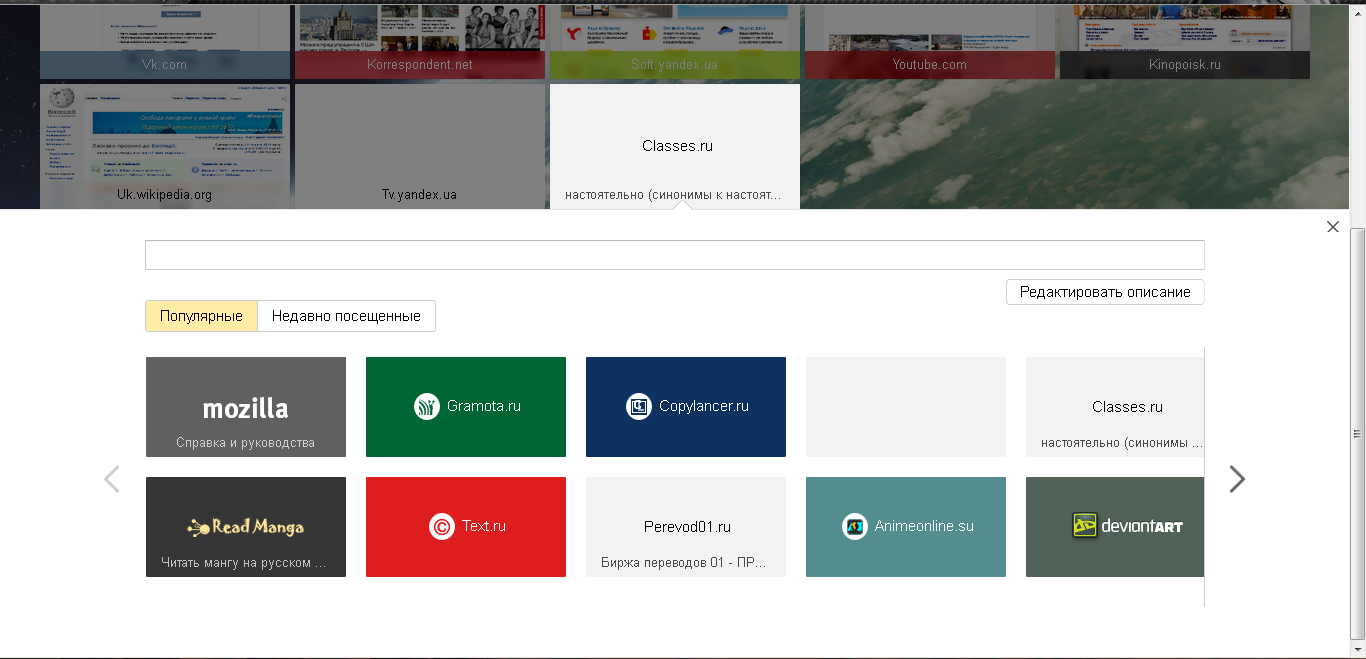 Создав новую вкладку, пользователи увидят поисковую строку, а также все, добавленные ранее закладки. На рабочей панели вмещается только 12 закладок, если их будет больше создается еще одна виртуальная панель. Чтобы перейти к ней, достаточно навести курсор «мыши» на край экрана.