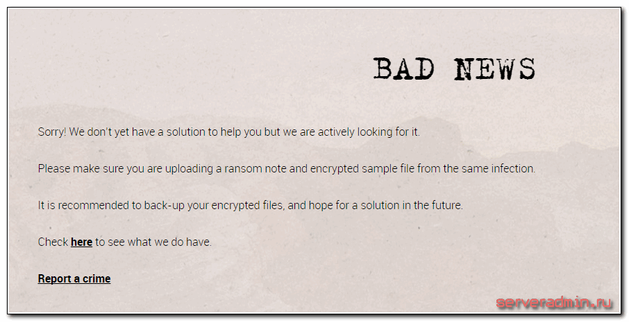 Но в интернете я нашел как минимум две конторы, которые обещают помочь в этой беде и расшифровать даже файлы с расширением crypted000007. В одну из них я с большой боязнью обратился.