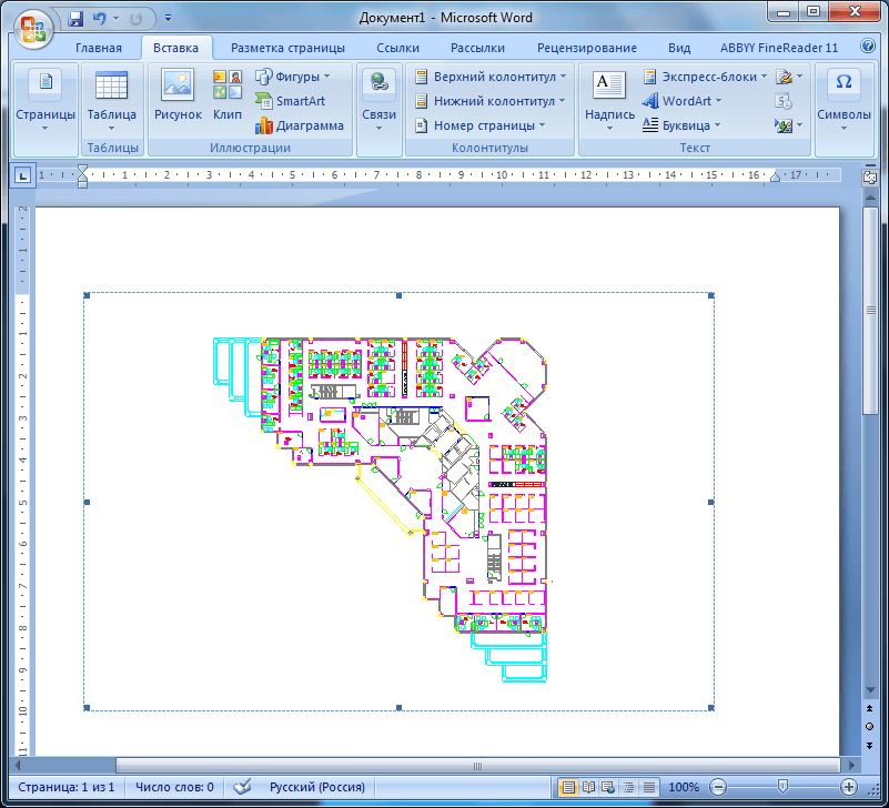 Открытие чертежа AutoCAD в Microsoft Word. Способ №2.