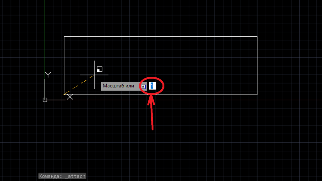 Задаем точку вставки и масштаб. Для того чтобы задать точку вставки, достаточно просто ткнуть курсором в нужно место. Масштаб задаем или движением курсора вправо для увеличения, влево для уменьшения, или прописываем вручную.